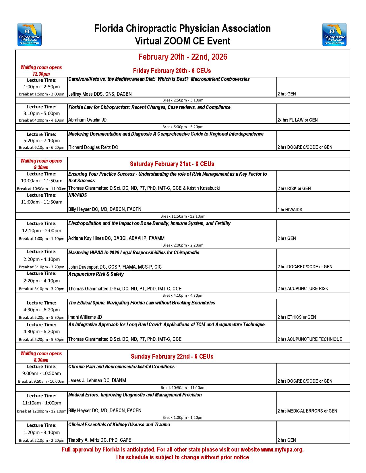 November 14th -16th, 2025 Virtual CE Event Schedule